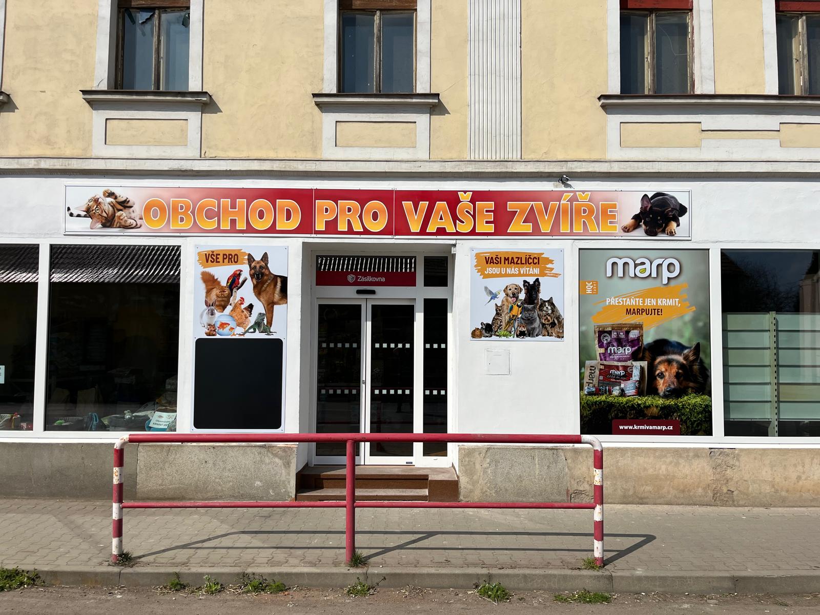 Prodejna se nachází na hlavní ulici poblíž pošty.